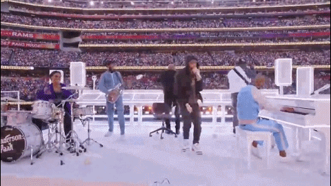 嘻哈(hip hop)作为诞生于美国贫民区街头的一种文化形式,在如此狂欢盛大的体育赛事面前呈现,让观众看到了更多元的文化,更特别的舞台,以及文体融合带来的艺术创新。这些嘻哈大神大部人来自西海岸,他们加起来一共斩获了43个格莱美大奖,创造了22张Billboard冠军专辑,全球唱片销量上亿。
