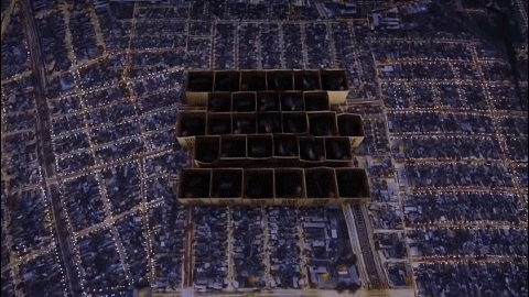 地面投影出一张南洛杉矶的地图,其中最为显眼的一张大地图为洛杉矶康普顿市的鸟瞰图。设计团队在这张鸟瞰图上镶嵌了数千个微型 LED 灯具,好像一座城市在灯光的掩映下,随着音乐和体育复苏。让人不禁想起科比经典语录,“你知道洛杉矶每天早上四点钟是什么样子吗?”