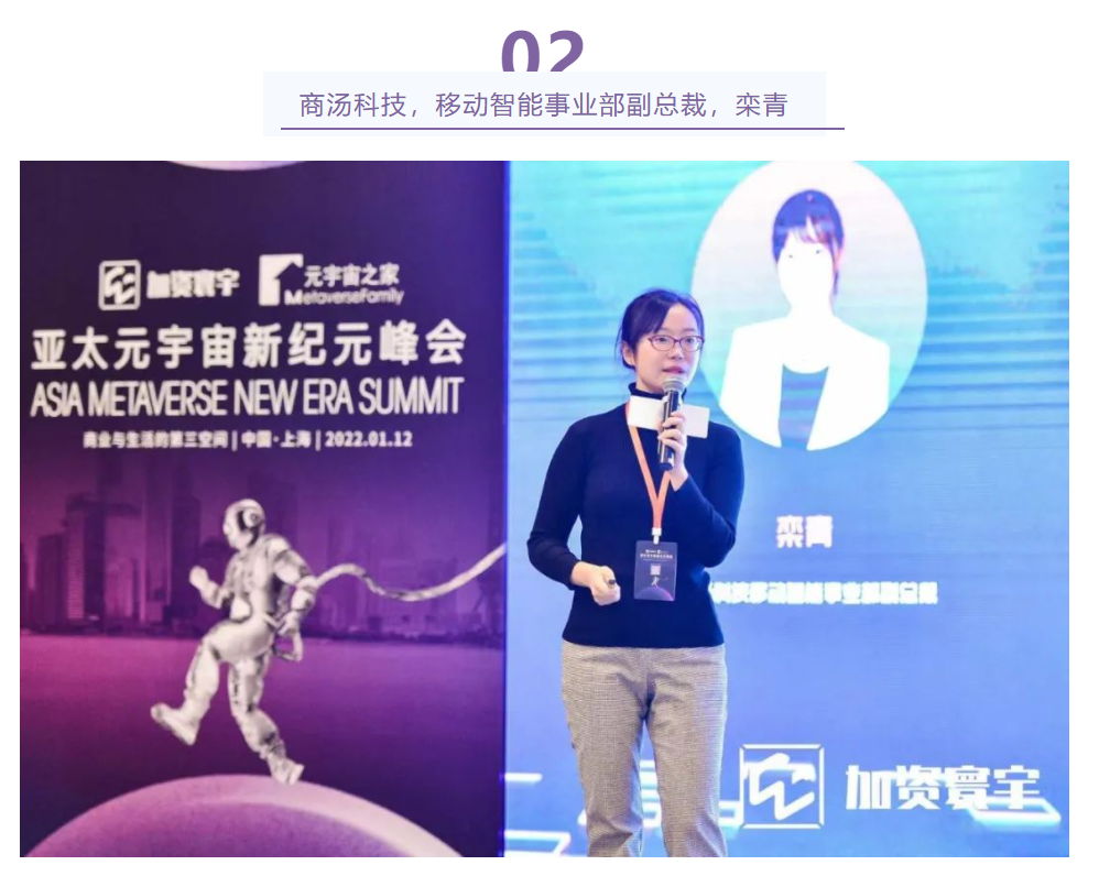 峰会主论坛上,阿里巴巴云游戏事业部/元境副总经理,龙志勇;中兴通讯,XR产品总经理 ,周琴芬;商汤科技,移动智能事业部副总裁,栾青;上海风语筑文化科技股份有限公司,副总经理 &首席品牌官,张树玉;彭博社电视栏目主持人,Mediabundance创始人,Michael Mumola;Animoca Brands,联合创始人&兼执行主席,Yat Siu;中青宝,元宇宙事业部总经理,Kevin;ParlayMe,创始人&科技板块首席记者,January Barnes ;Sway Social,创始人Jure Zih ;NFTrade,CEO,Ori Levi ;D-Carrick, CEO, Mr. Inho Choi等嘉宾,分别从云游戏、5G+AR、AI、数字技术等方面围绕主论坛“元宇宙开启Web3时代的新纪元”展开精彩干货分享,为元宇宙应用场景、行业落地提供了丰富多方位的可借鉴通道!分论坛一:MetaTech元宇宙科技:让技术创新赋能未来Imagination Technologies ,生态技术负责人,戚龙松;北京奇领空间数字科技有限公司,CEO,陶柏帆;元梦人文智能国际有限公司,CTO,张雪源;创壹科技,联合创始人&CEO,梁子康;Sensorium,Deputy CEO,Alex Blagirev;Sandbox VR, 产品和科技部副总裁, Kimkind Yeung;Epik,产品副总裁,Darren Smith ;Boson Protocol, Co-Founder, Justin Banon;OliveX,首席营销官,Marisa Lam;VR Next,首席执行官,Sergey Kiselev ;上海市多媒体行业协会副秘书长/上海市多媒体行业协会扩展现实专业委员会主任, 端木海婴;微软(中国)有限公司,云解决方案架构师,李争;声网,新兴市场及行业产品负责人,姚一晟;雷电所,策展人,虞雪晴 ;魔珐科技,影视IP负责人,张鑫睿等嘉宾围绕“MetaTech元宇宙科技:让技术创新赋能未来”的主题开启元宇宙分论坛一的精彩分享,涵盖元宇宙的商业生态、前沿技术、品牌焕新、投资路径等进行深度分享。干货十足,精彩不停!