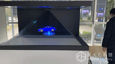 全息柜也是实现裸眼3D展示的一种方式,通过全息柜内3-4个面的光反射原理,在中心位置形成全息影像,给人裸眼3D的视觉效果,但此技术的实现必须通过柜体式全息才能实现,并且成像面积大小会受到限制。