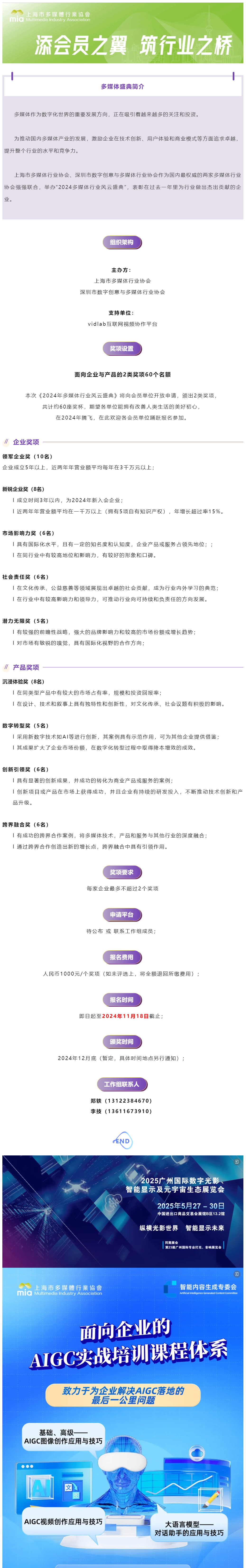 mia会员奖项申请 | 2024多媒体行业风云盛典